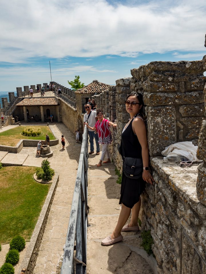 Wir parkten außerhalb der Altstadt und stiegen zu Fuß hinauf – vorbei an kleinen Souvenirläden, die Mini-Katane, Ritterrüstungen und kitschige Schneekugeln verkaufen. Doch sobald man durch das Stadttor tritt, ist man wie in einer anderen Zeit. Die engen Gassen, die alten Steinhäuser, und dann dieser atemberaubende Blick von den Zinnen der Guaita, der ersten der drei legendären Türme von San Marino.